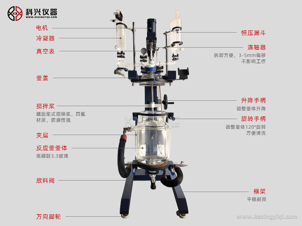 升降雙層玻璃反應(yīng)釜通過雙層反應(yīng)釜夾層,注入恒溫的(高溫或低溫)熱溶媒體或冷卻媒體,對反應(yīng)釜內(nèi)的物料進(jìn)行恒溫加熱或制冷,并且可以提供攪拌。物料在反應(yīng)釜內(nèi)進(jìn)行反應(yīng),并能控制反應(yīng)溶液的蒸發(fā)與回流,反應(yīng)完畢,物料可從釜底的出料口放出,操作極為方便。是現(xiàn)代化學(xué)小樣,中樣實驗、生物制藥及新材料合成的理想設(shè)備。